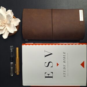 The act of flipping through the pages of my ESV Study Bible, annotating the margins, and revisiting highlighted passages adds a personal and contemplative dimension to my study. As Psalm 1:2-3 describes, those who delight in and meditate on the law of the Lord are like trees planted by streams of water, yielding fruit in due season. - Journaling with Fountain Pen
